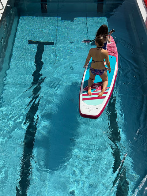 Ein echtes Highlight: Kanufahren im Pool – unterstützt durch eine leistungsstarke Gegenstromanlage!